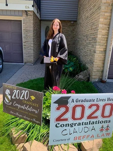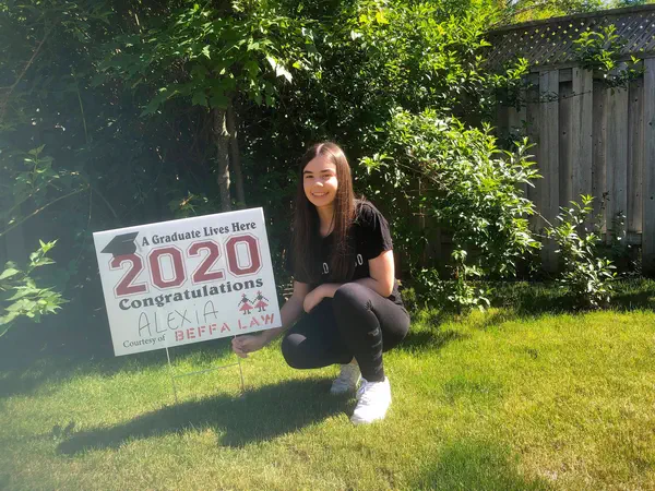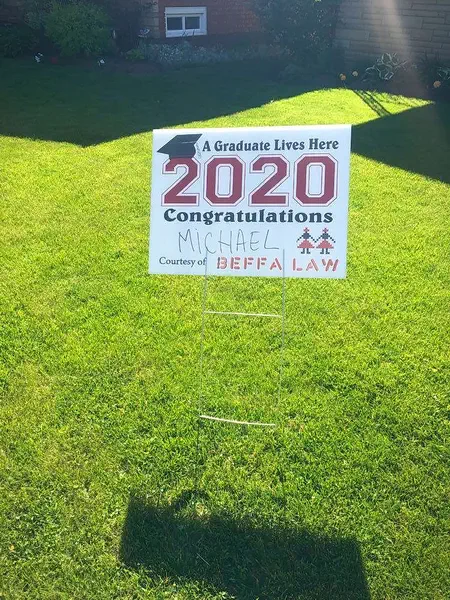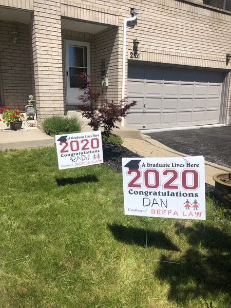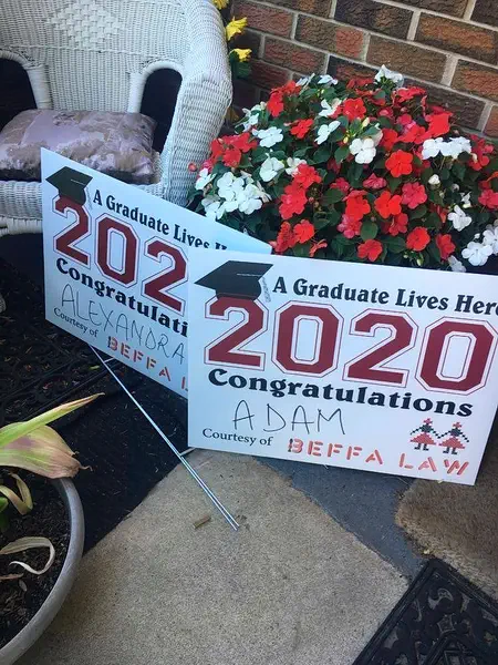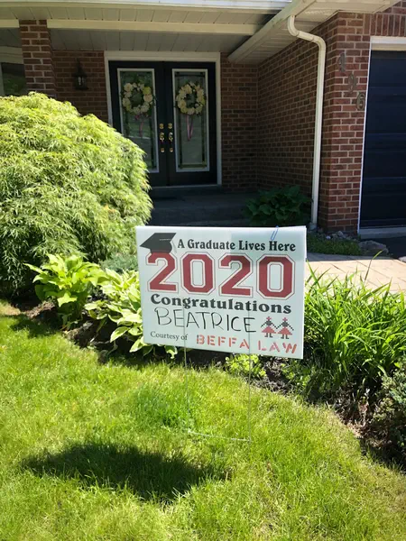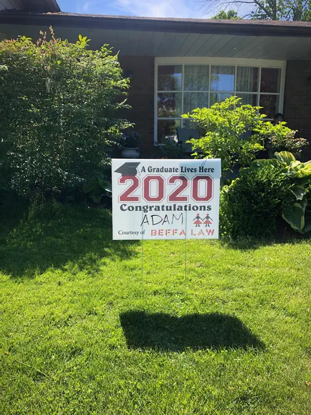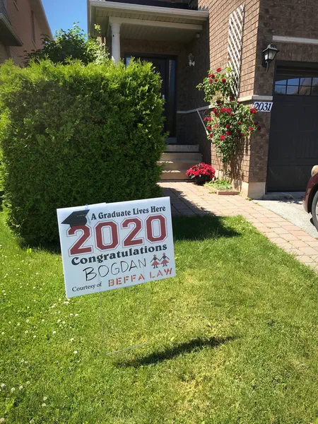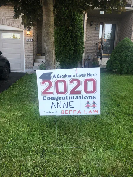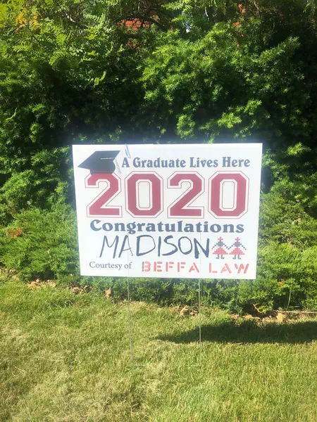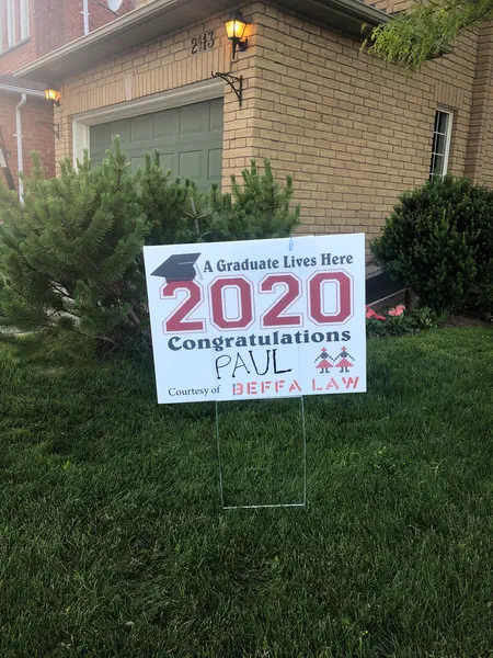 In 2020, during the COVID-19 lockdown, graduation ceremonies were canceled due to restrictions. To help young graduates celebrate their achievements, we at Beffa Law created lawn graduation signs. These signs provided a way for graduates to mark their special milestone and share their success with their community.